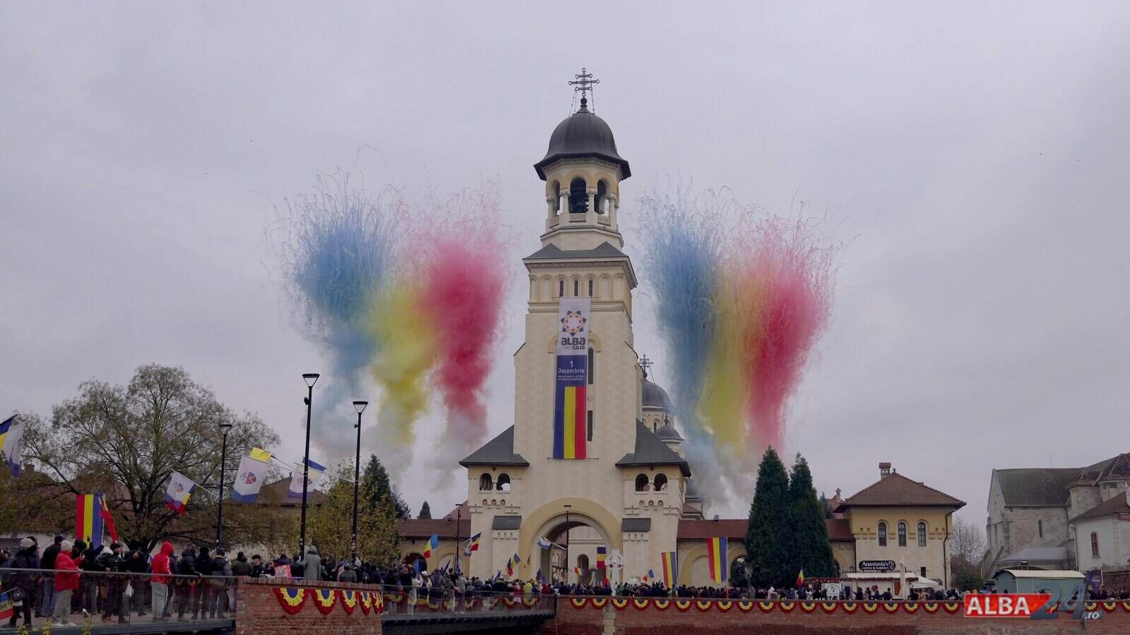 Alba Iulia a marcat Ziua Națională de 1 Decembrie 2025 cu un spectacol inedit de focuri de artificii de zi în Cetatea Alba Carolina. Coloanele tricolore au fost lansate pe cer din zona Catedralei Reîntregirii, un moment special pentru participanți.