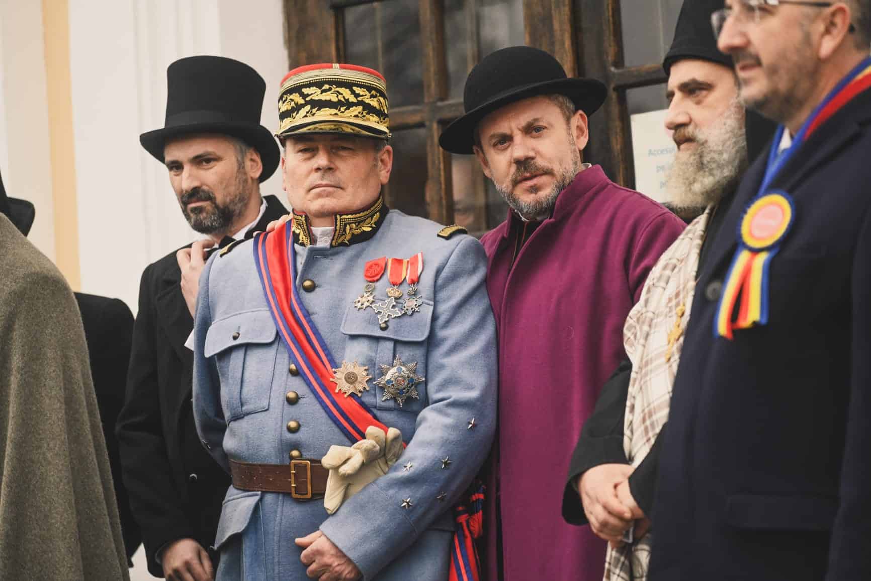 Huiduieli la reconstituirea istorică din Alba Iulia, în timpul discursului generalului Berthelot